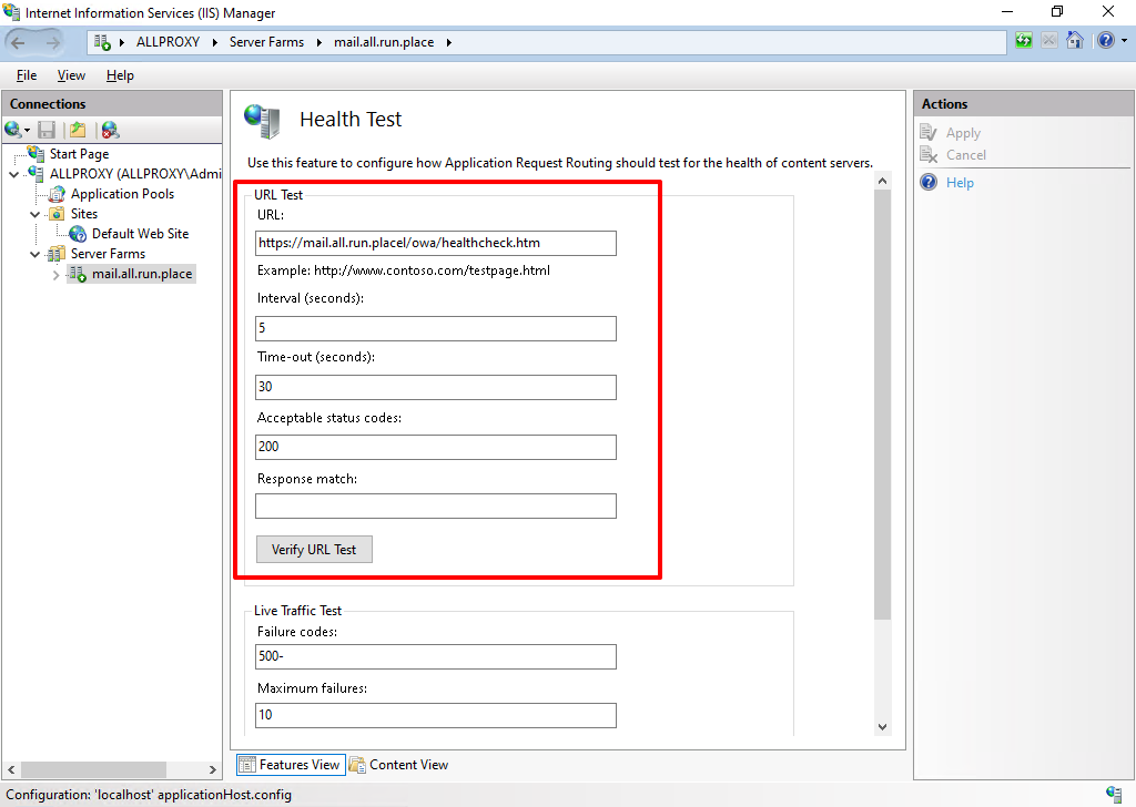 Health Test, enter your external exchange server https://FQDN/owa/healthcheck.htm