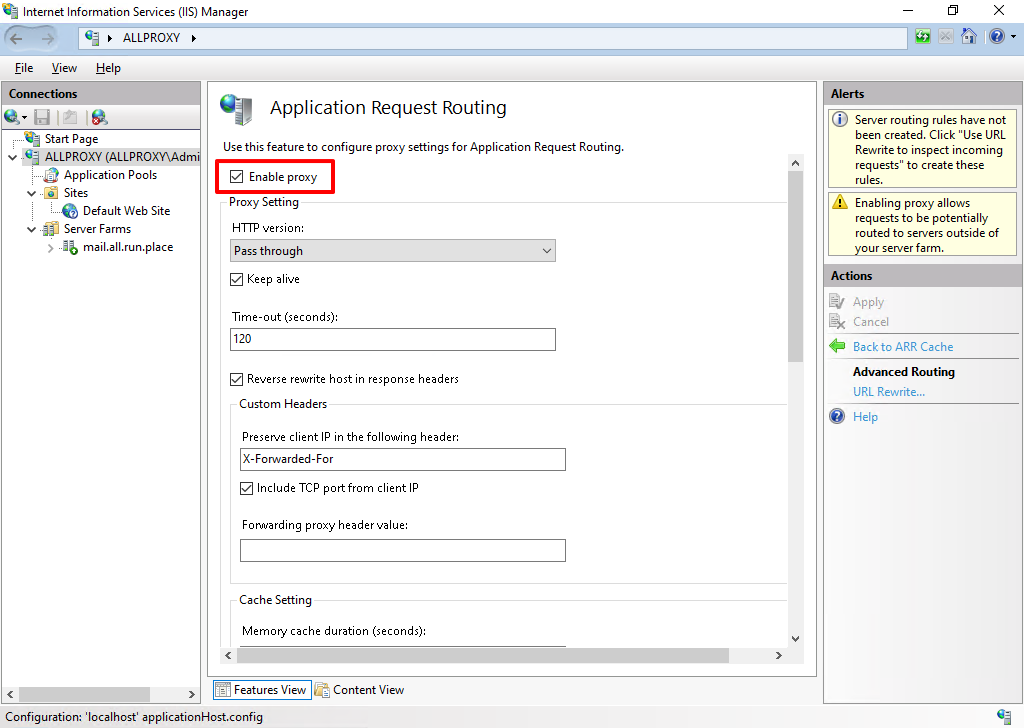 IIS Proxy ARR 1.1 Basic settings 1.2 Server Farms 1.3 URL Rewrite rules