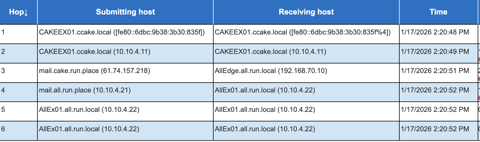 Cakeadmin sends a message to cake3@all.run.place and alladmin@all.run.place. We can check from the message header from each delivered messages.